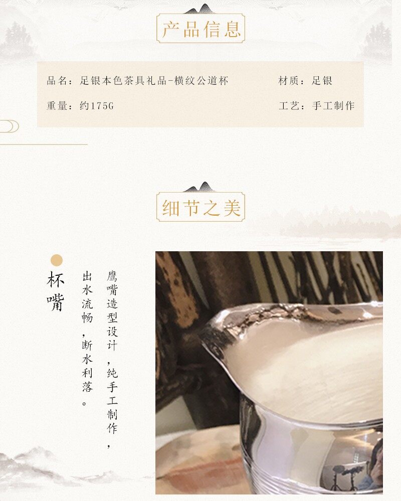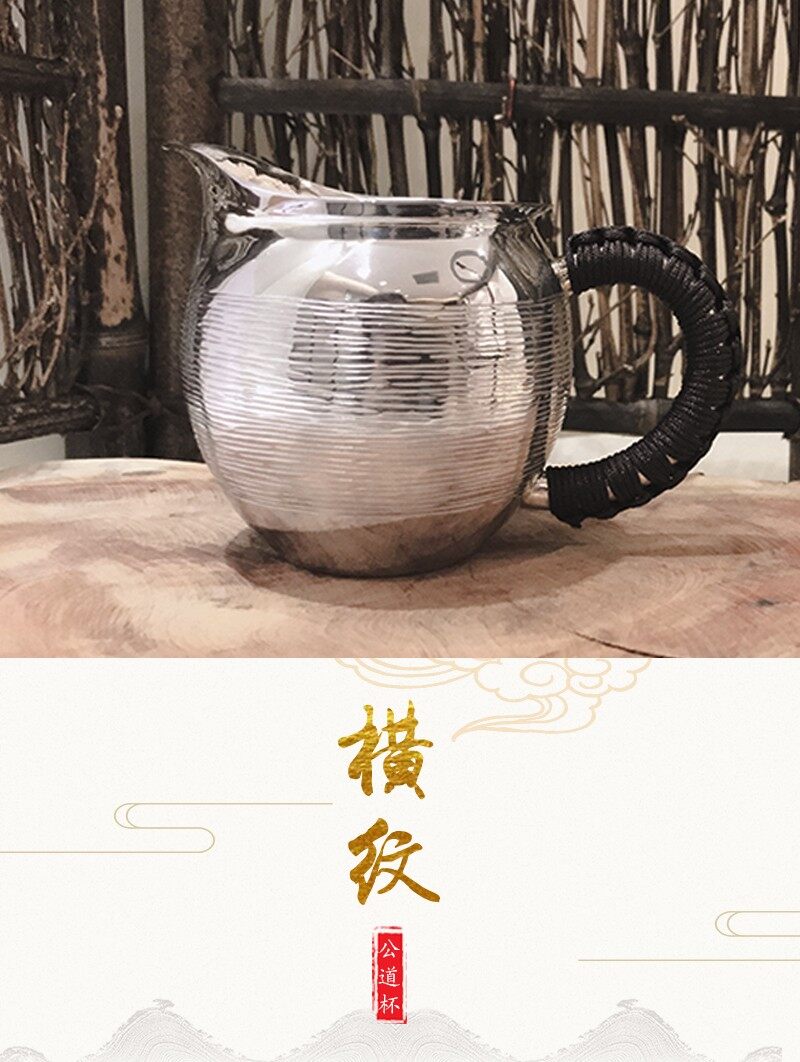 足银横纹公道杯把手分茶器送礼自用收藏功夫茶道银茶具