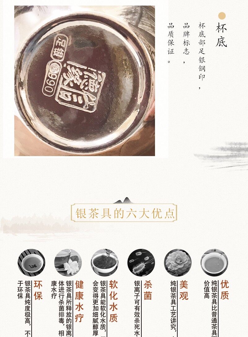 足银本色办公家居礼品-滴水之恩足银养生杯