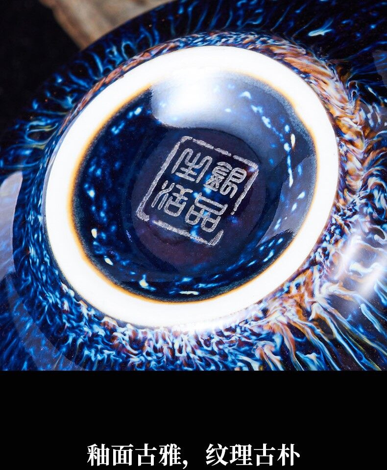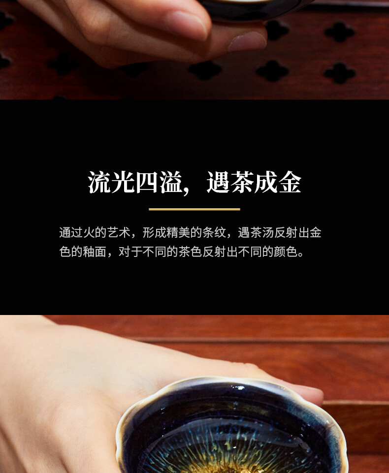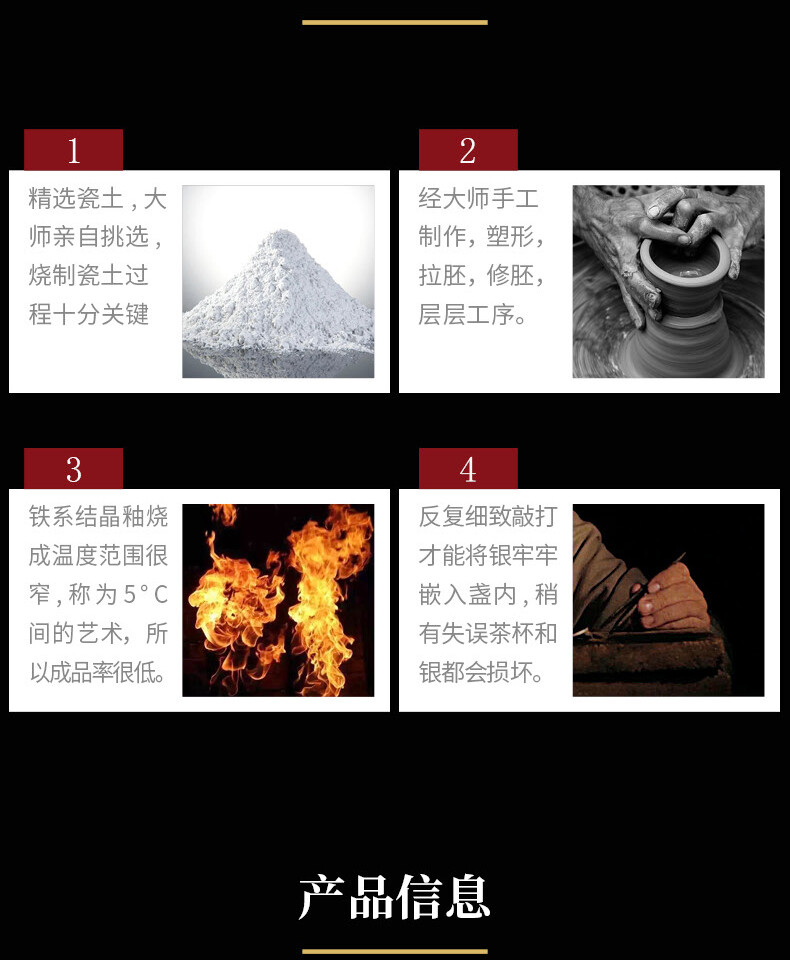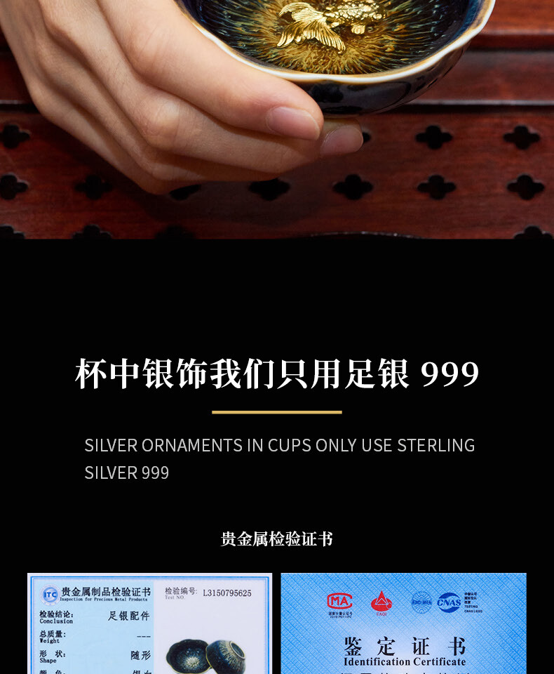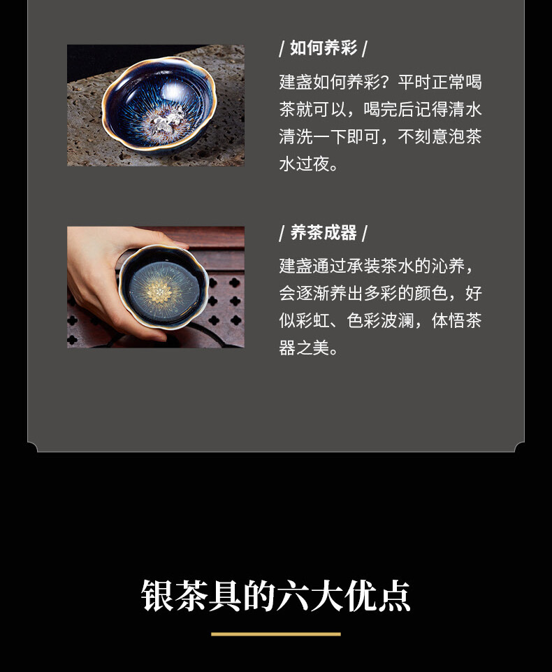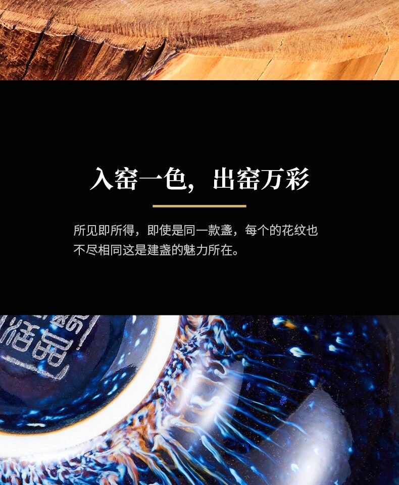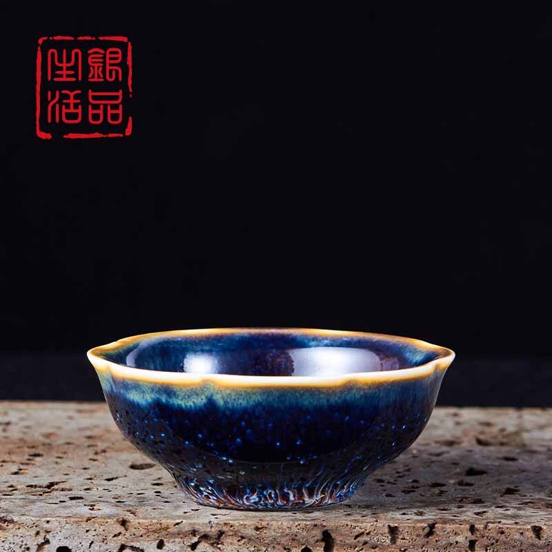 窑变天目釉建盏银茶杯陶瓷莲花功夫茶杯家用镶银主人杯