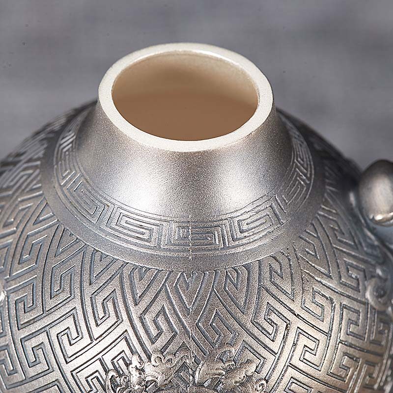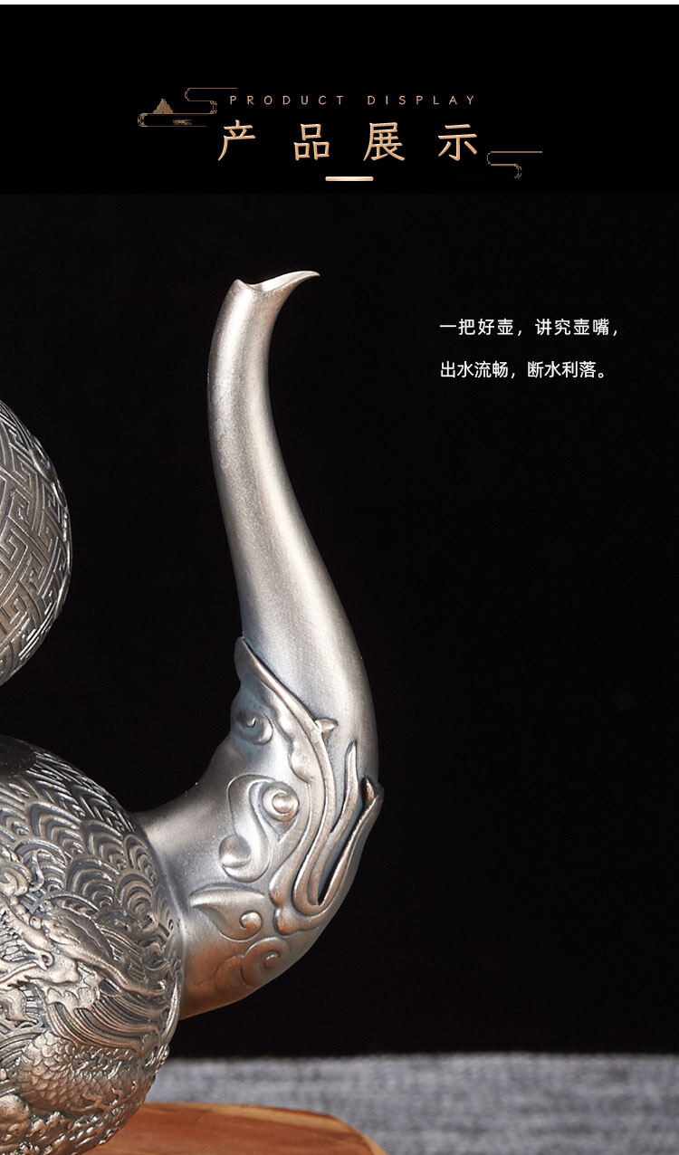 孔子足银茶具提梁壶,纯手工银壶,烧水壶,至臻匠器大师造(新款)