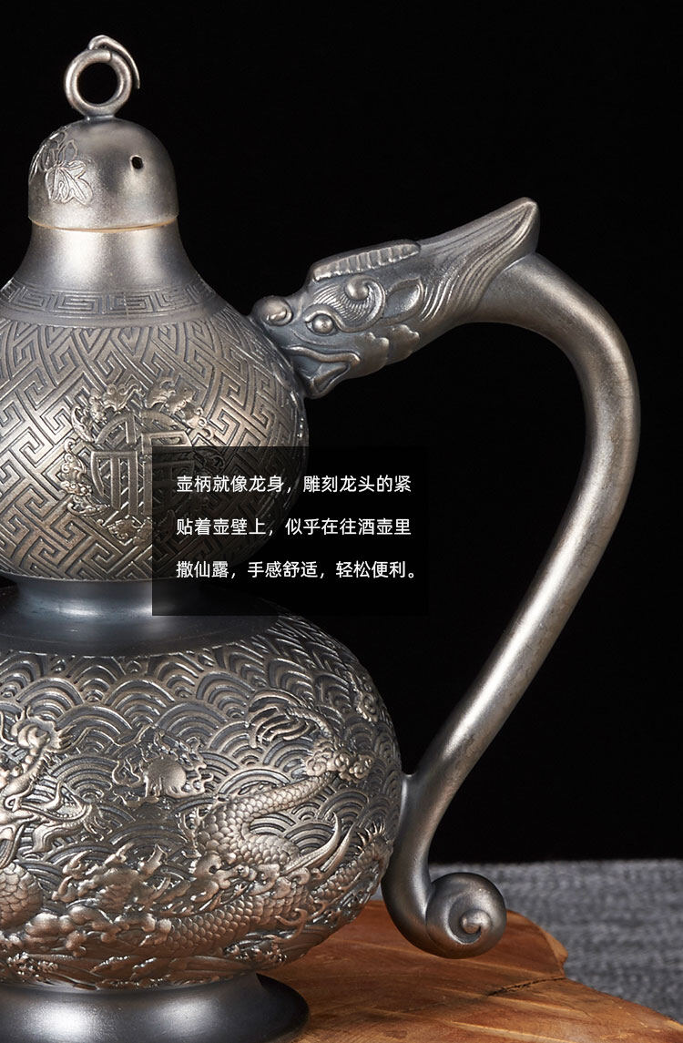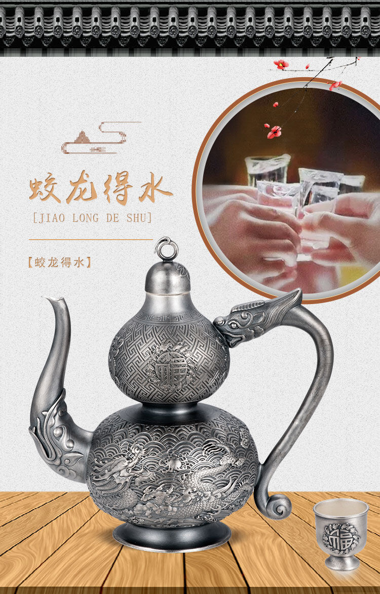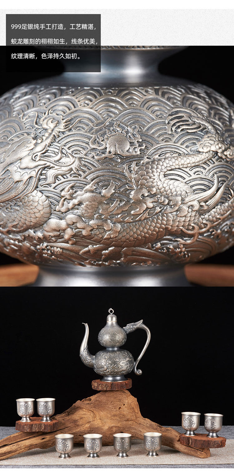 蛟龙得水手工银酒壶,足银本色酒具礼品