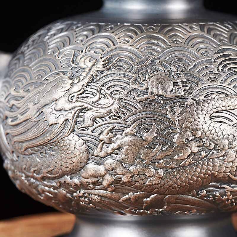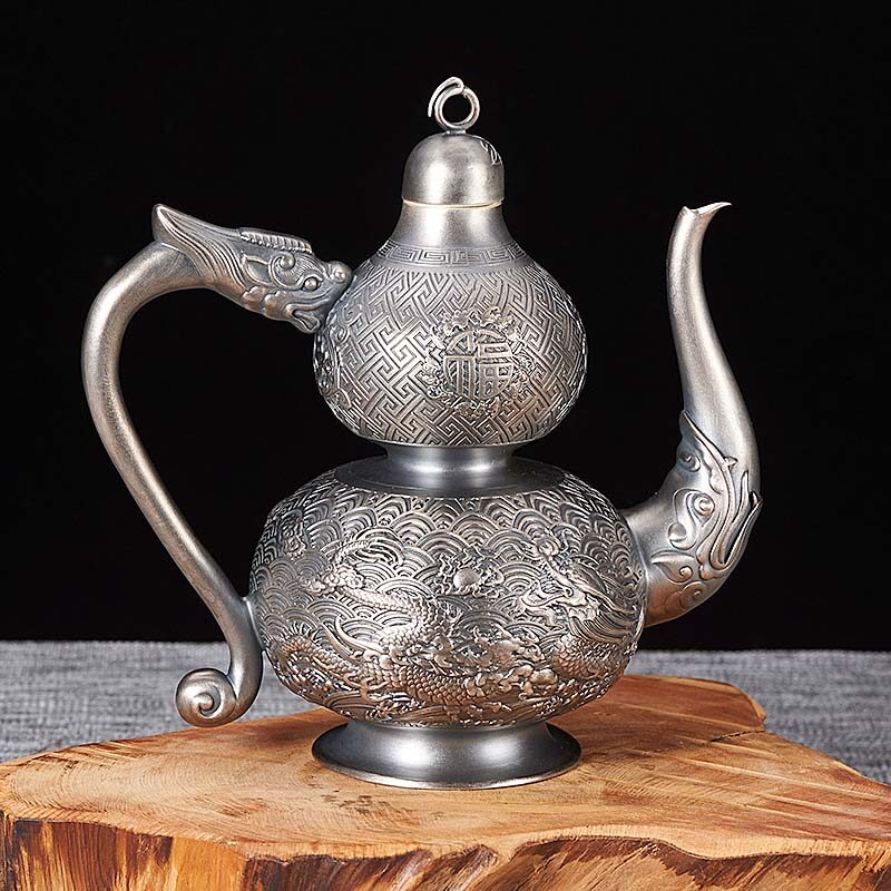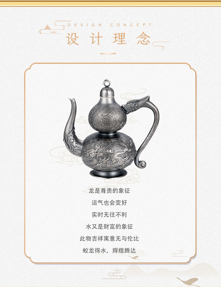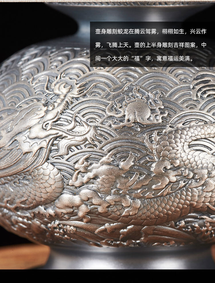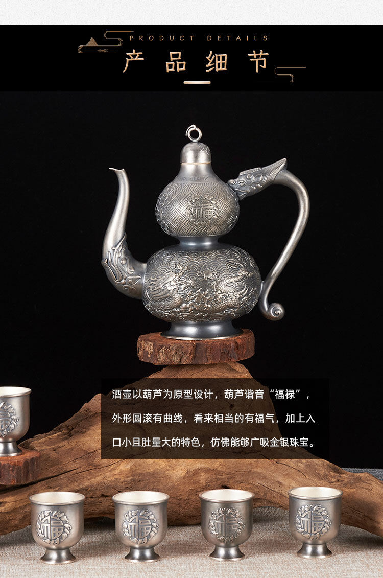 蛟龙得水手工银酒壶,足银本色酒具礼品