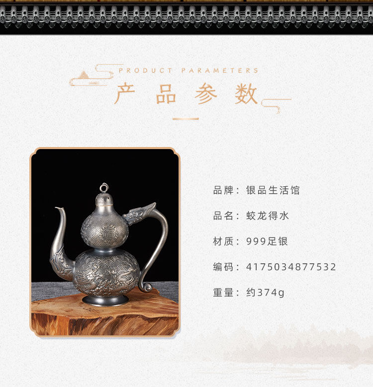 赢定江山足银玻璃养生银壶,烧水壶观赏壶,办公家居礼品