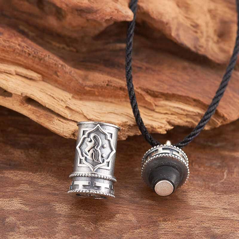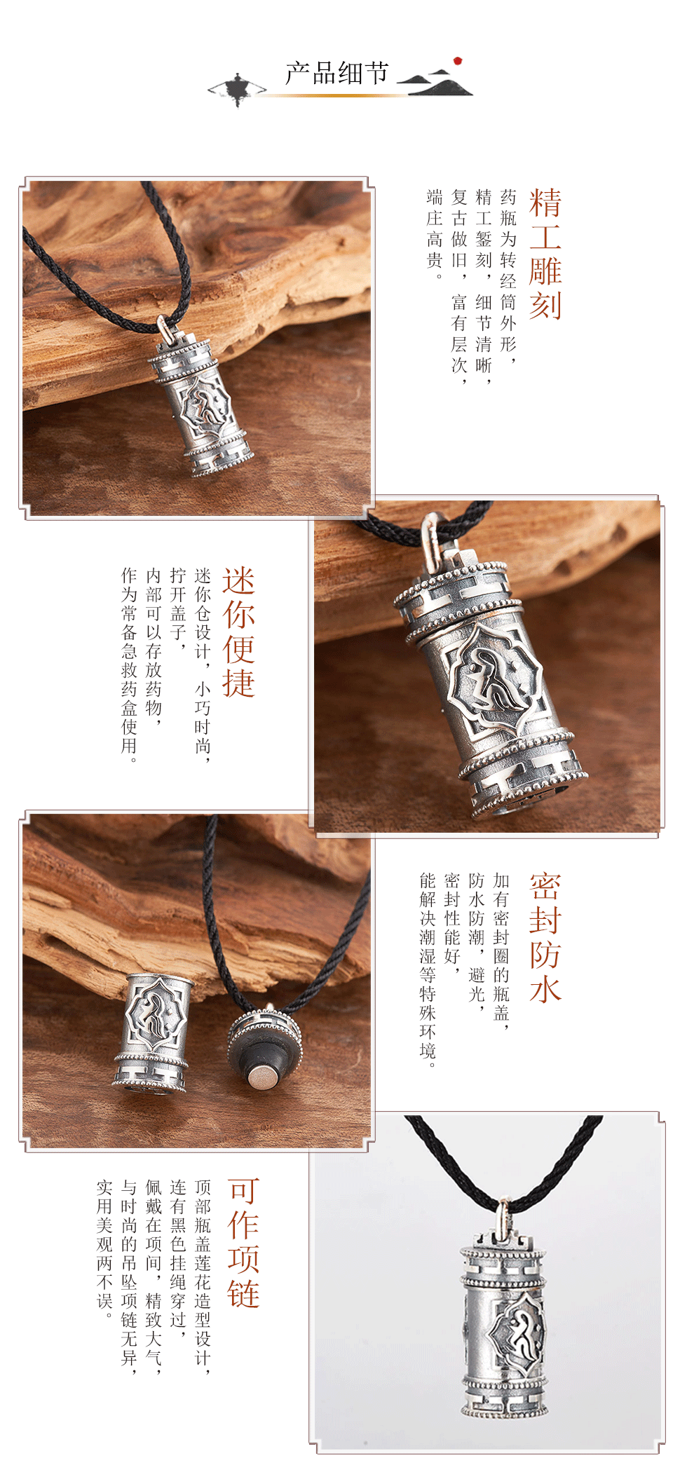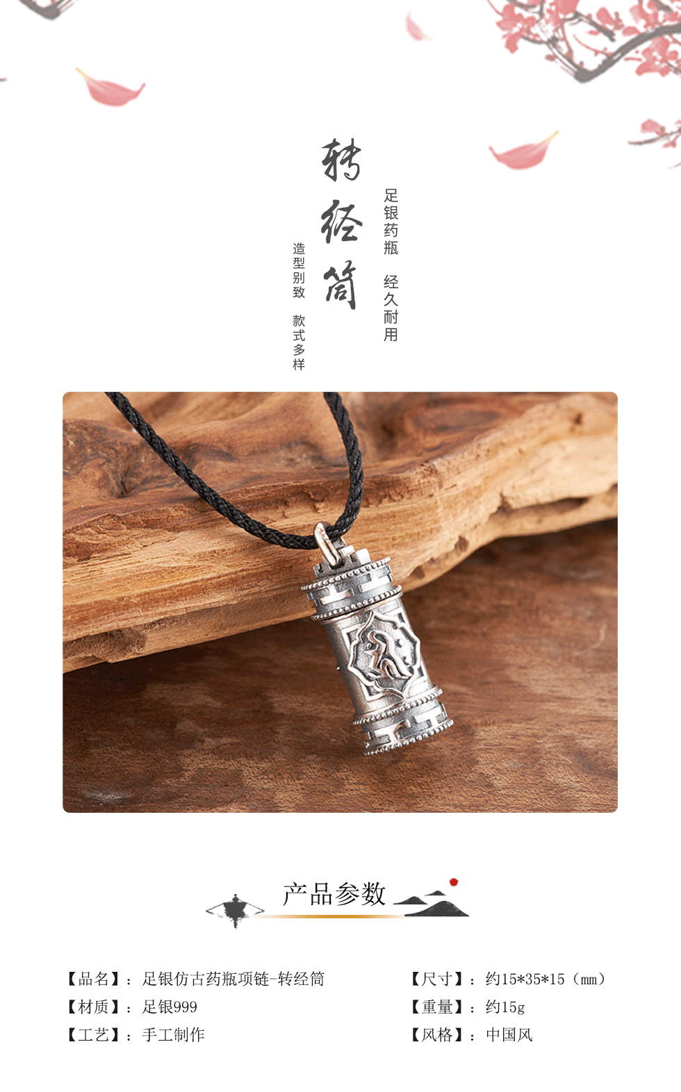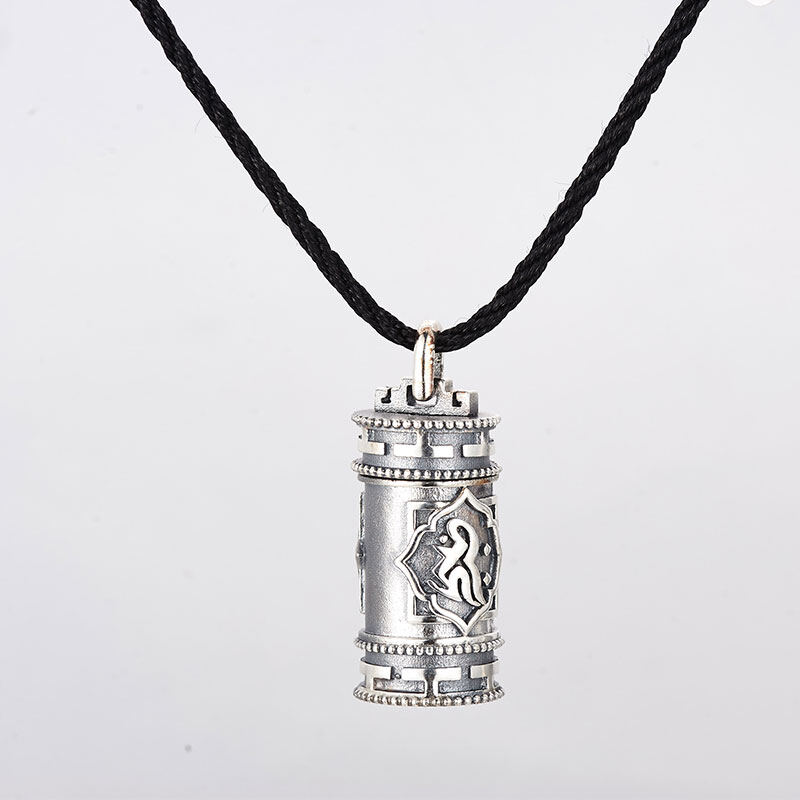 转经筒足银仿古药瓶吊坠,功能性可穿戴创意银饰药瓶项链