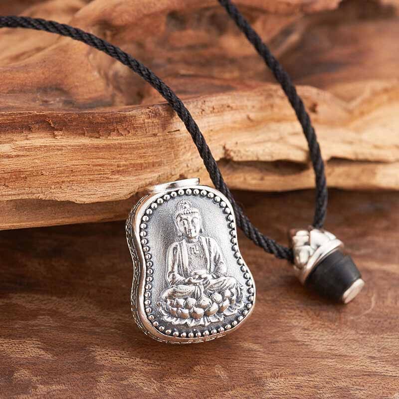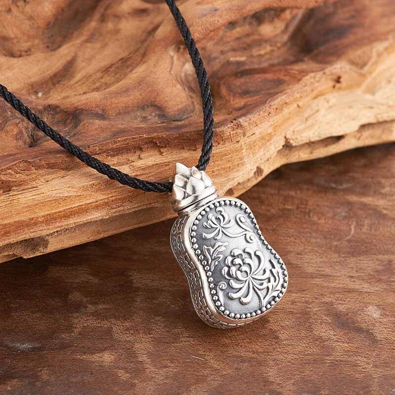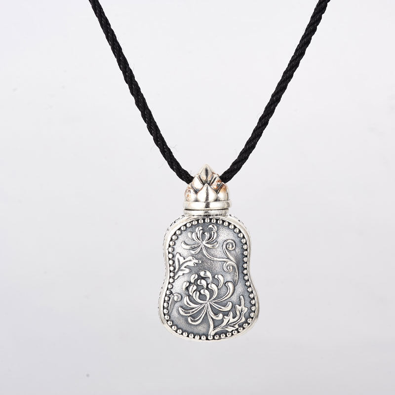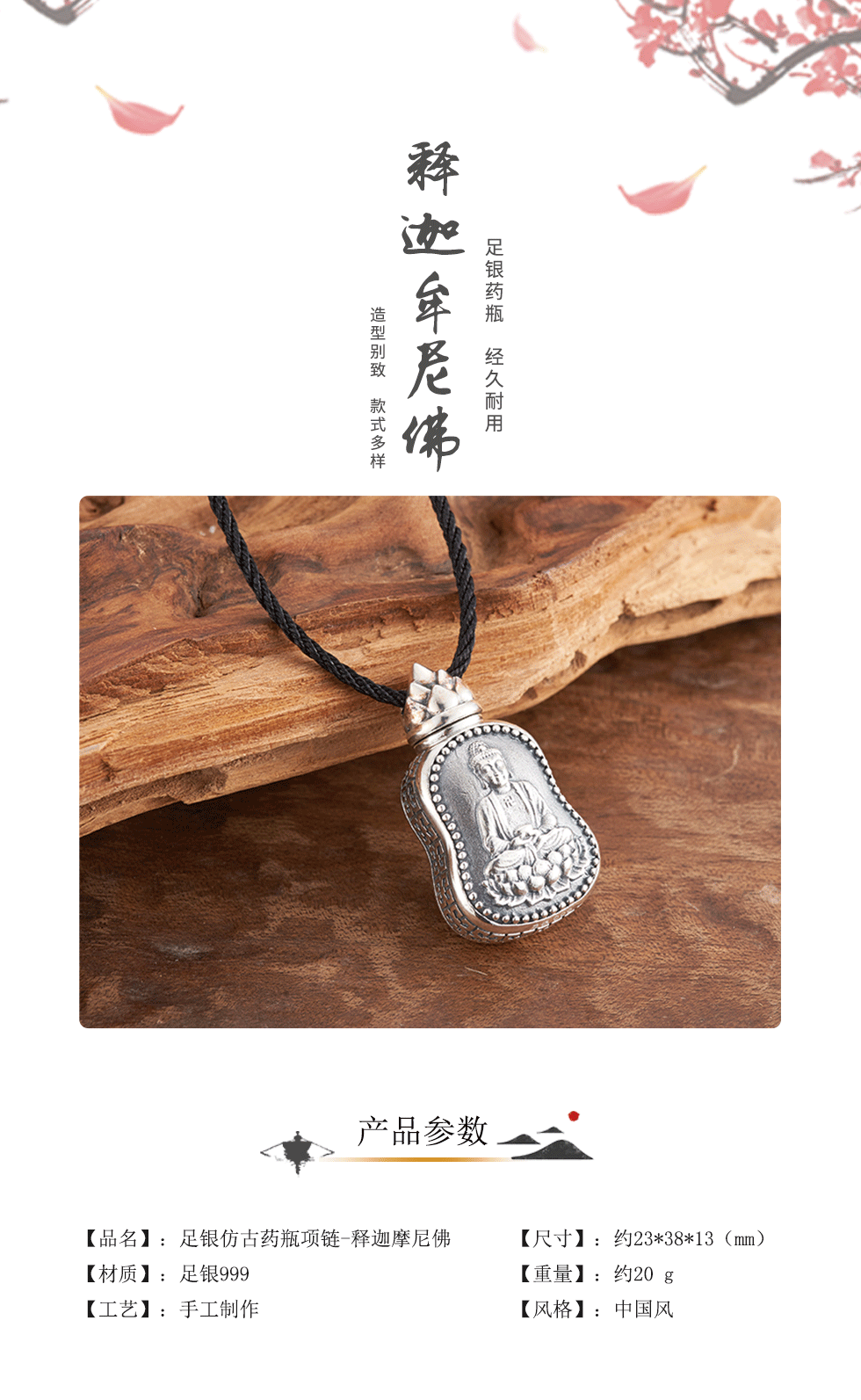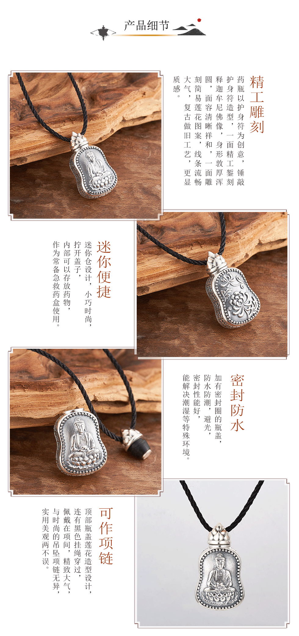 释迦摩尼佛足银仿古药瓶吊坠,功能性可穿戴创意银饰药瓶项链