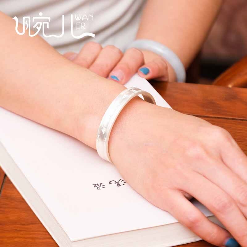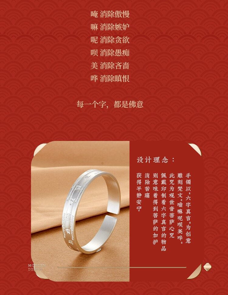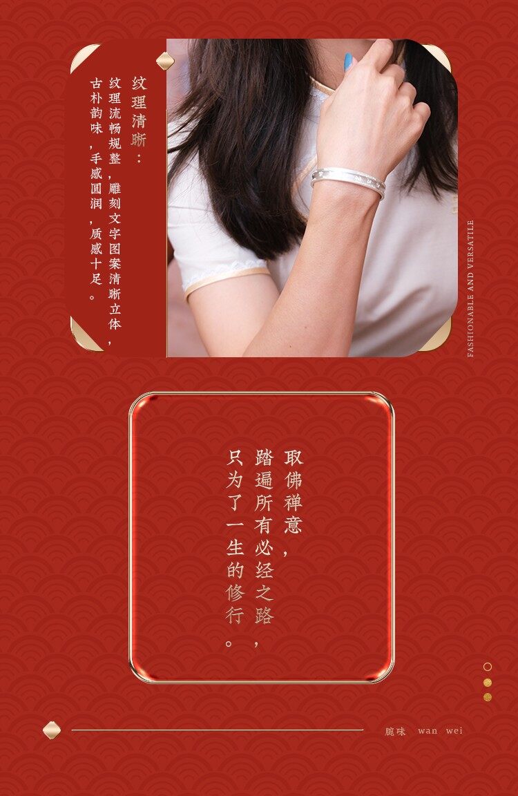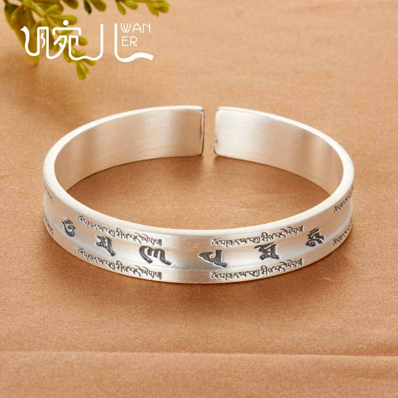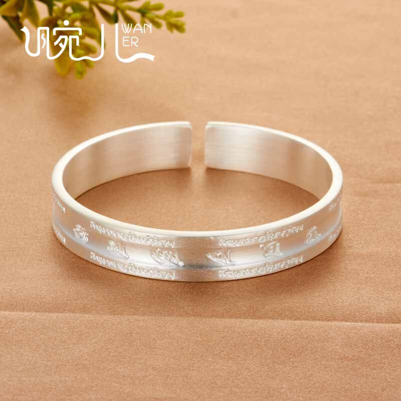 999足银六字真言光面实心加厚开口可调足银镯子经文手环刻字