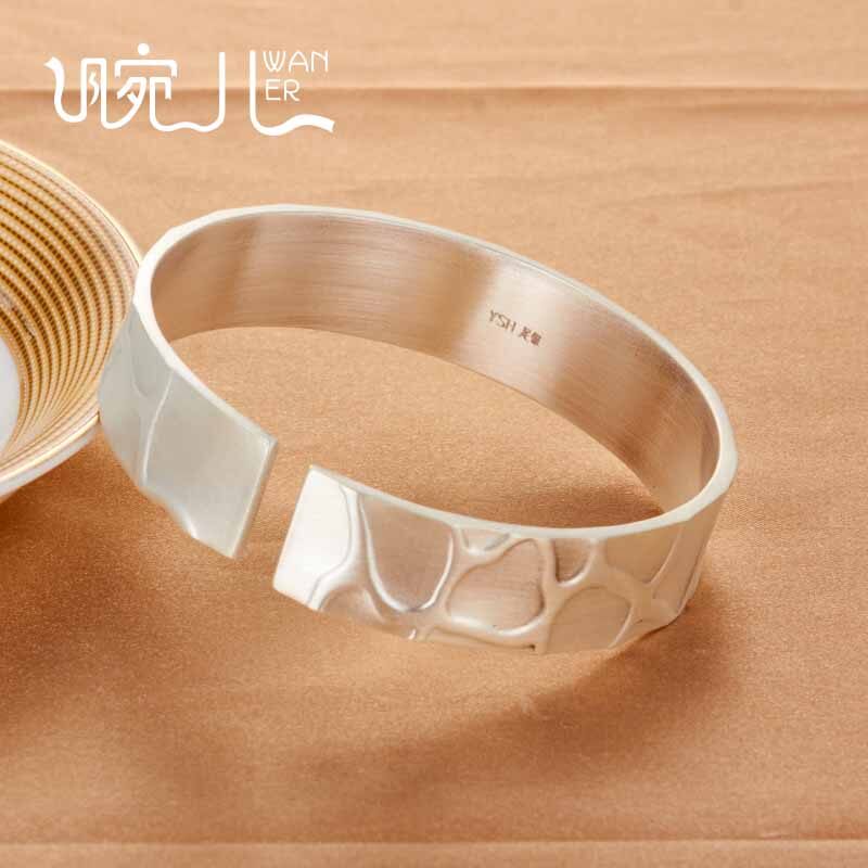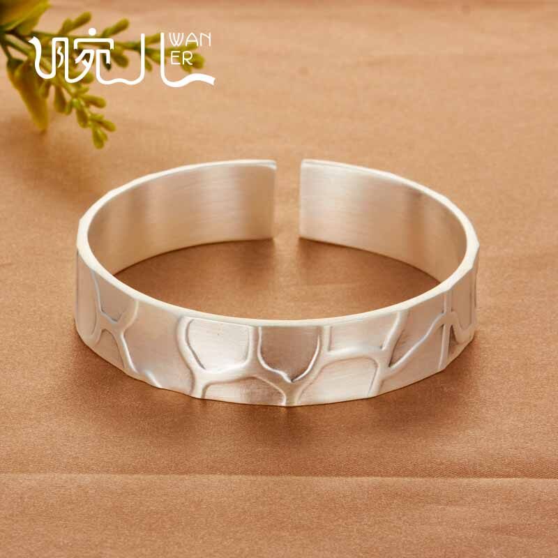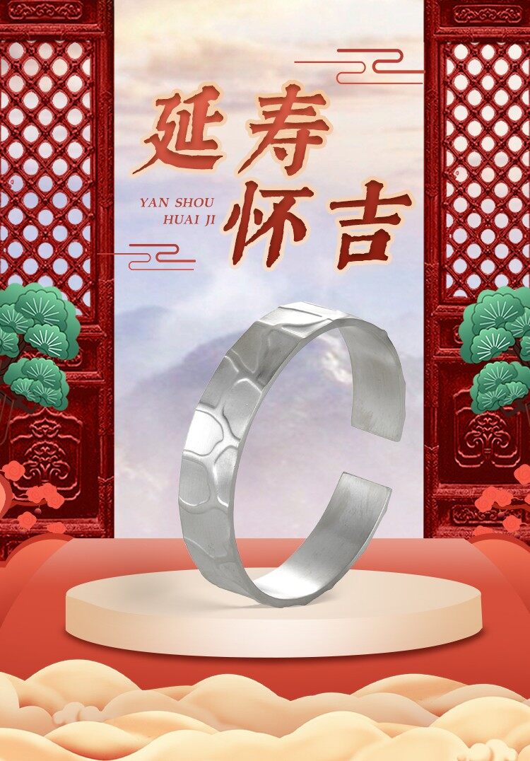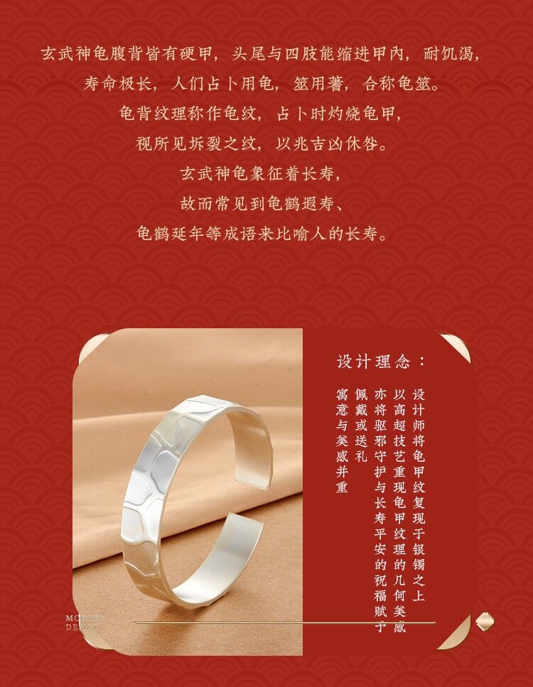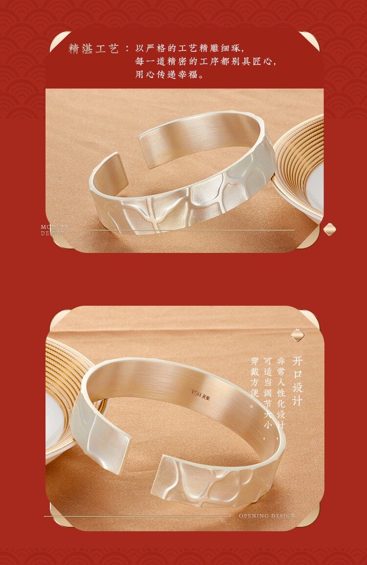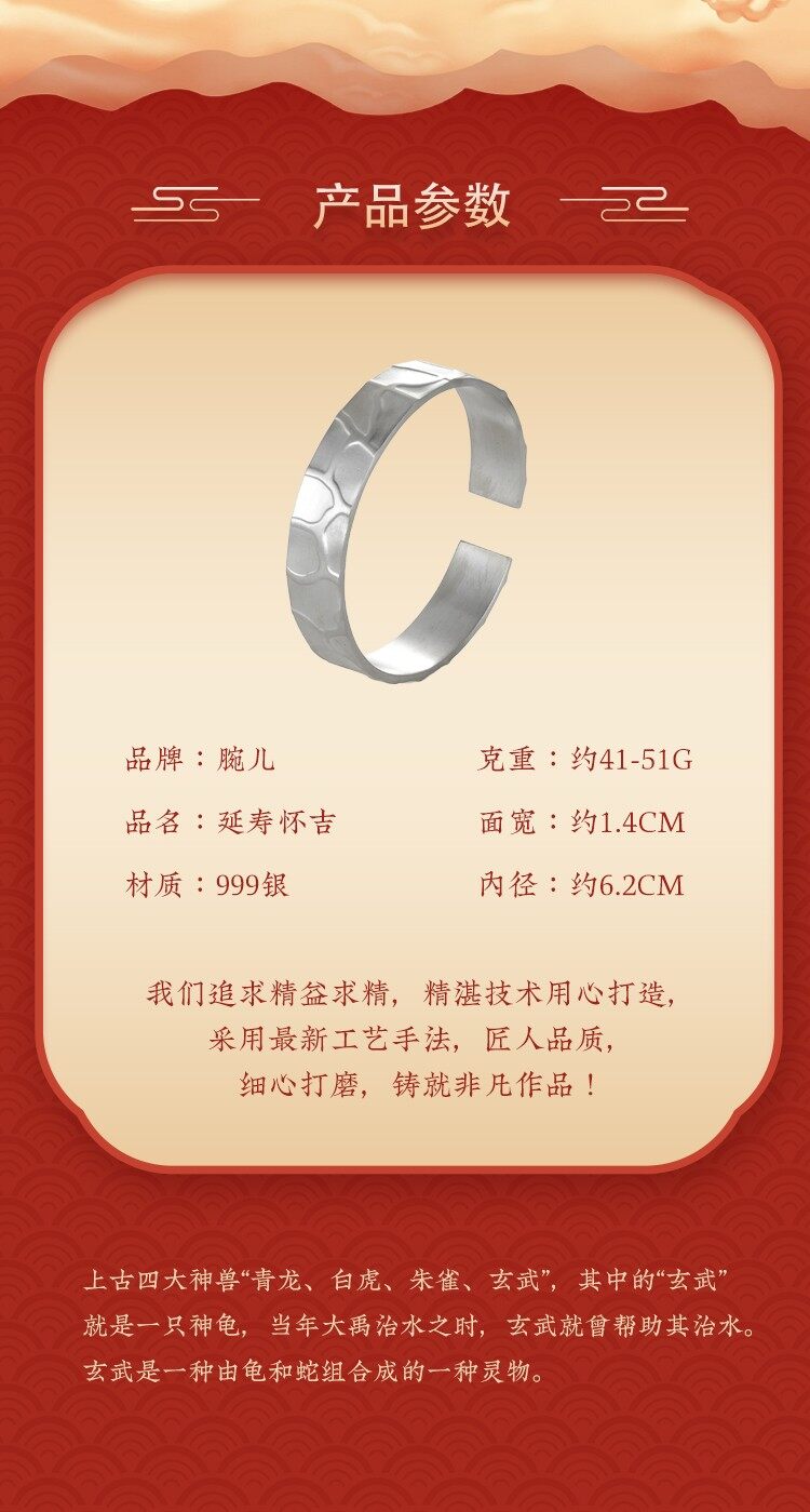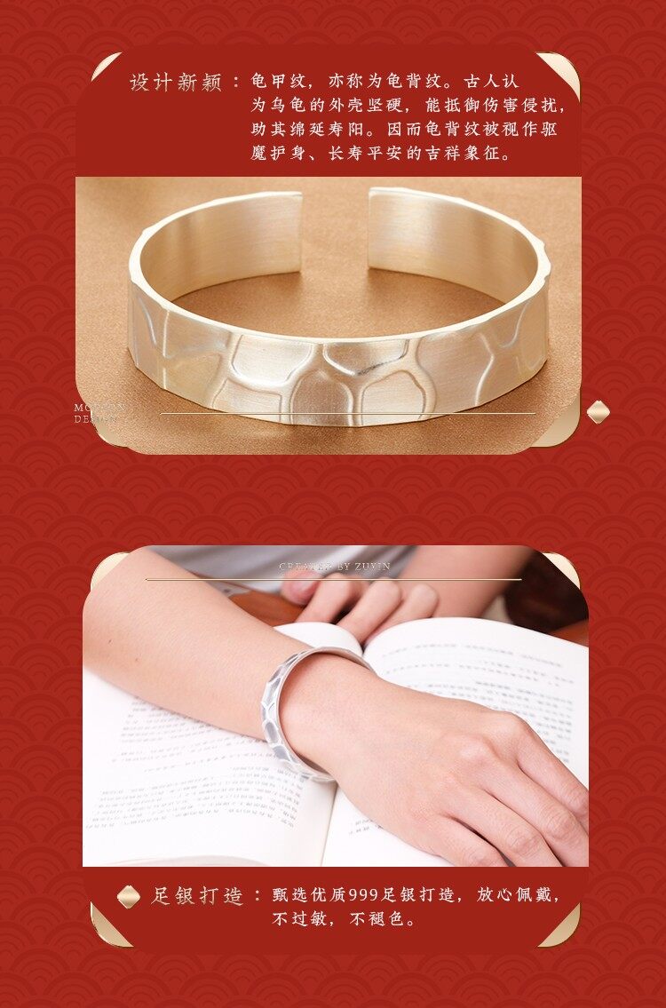 999纯银手镯龟甲纹复古个性银饰银镯子开口可调延寿怀吉